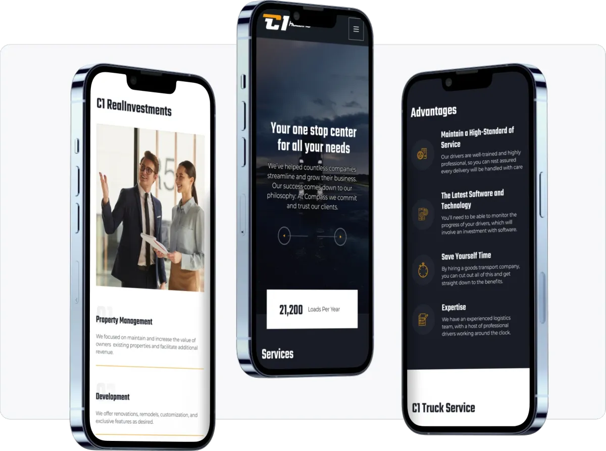 We created a corporate website that unifies all C1 Holding services on a single page, featuring clear descriptions and targeted CTAs for customers, brokers, and drivers. This simple landing page helps connect all areas of the business in one centralized platform.