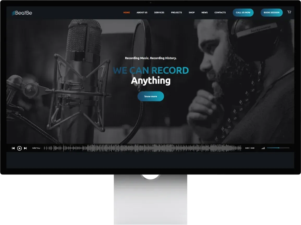 A multi-page website for BeatBe is a perfect solution for arecording studio. It provides all the functionality needed for thecustomer all while being easy to navigate and use.